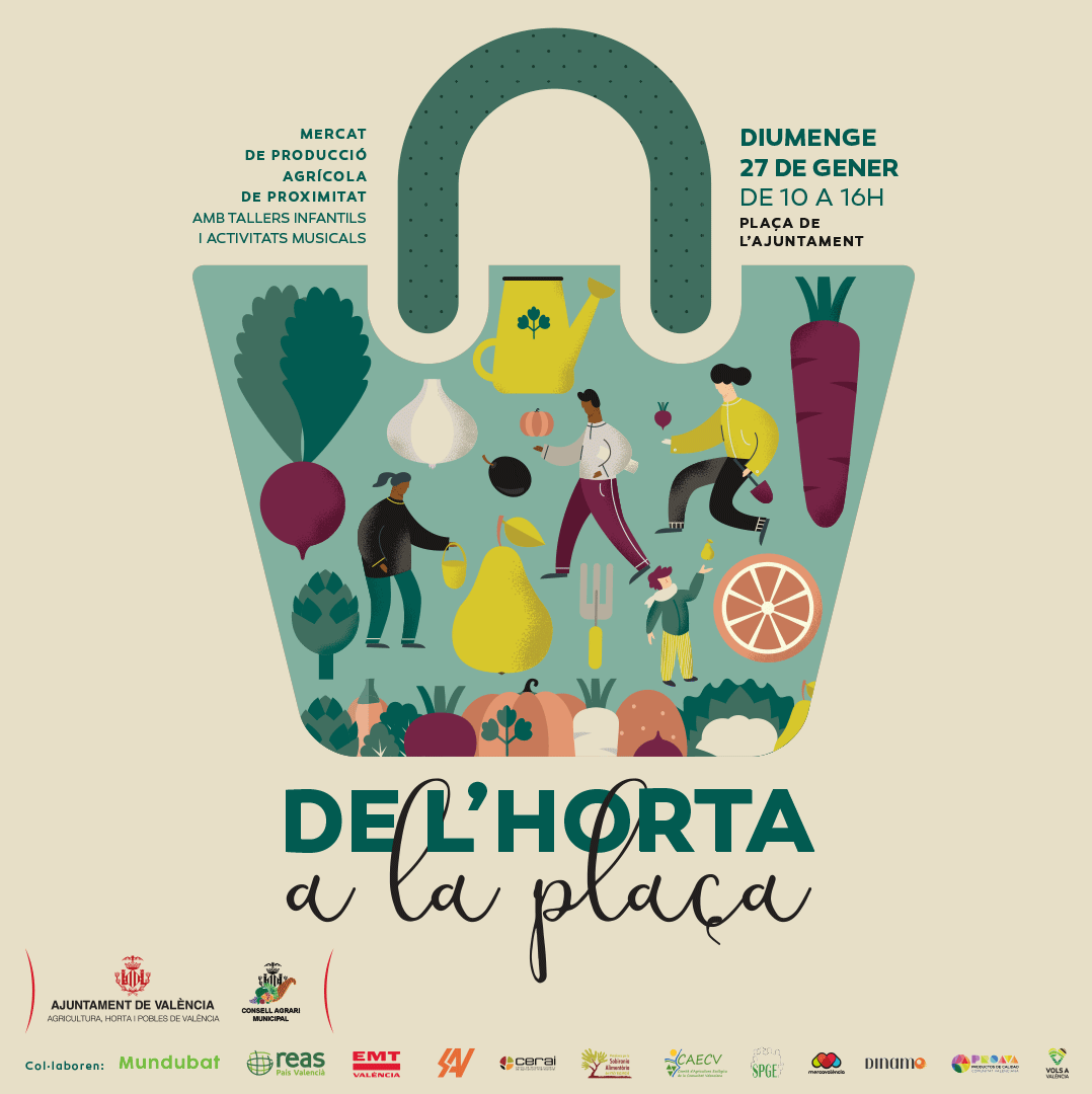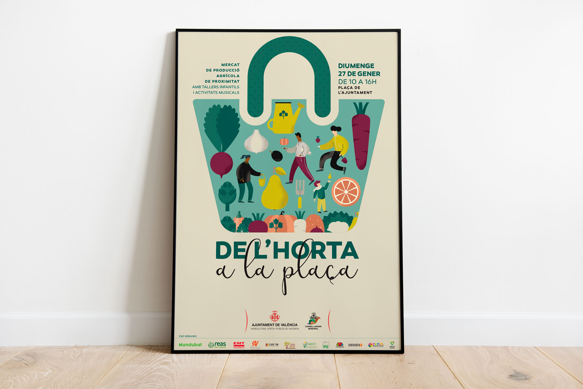 Mercado de producción agrícola de proximidad celebrado en la plaza del Ayuntamiento. Trabajo para el Consell Agrari Municipal de València.
