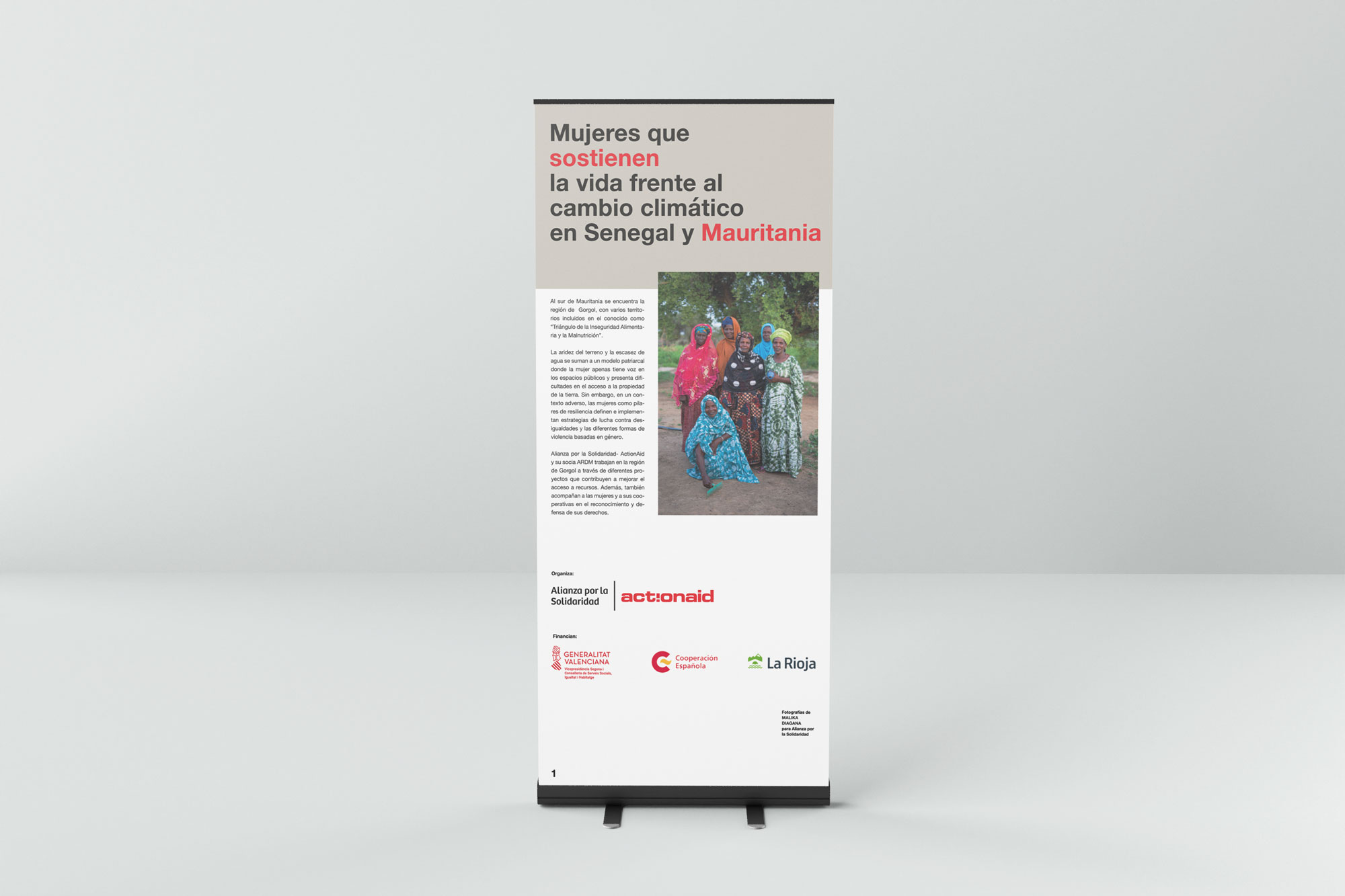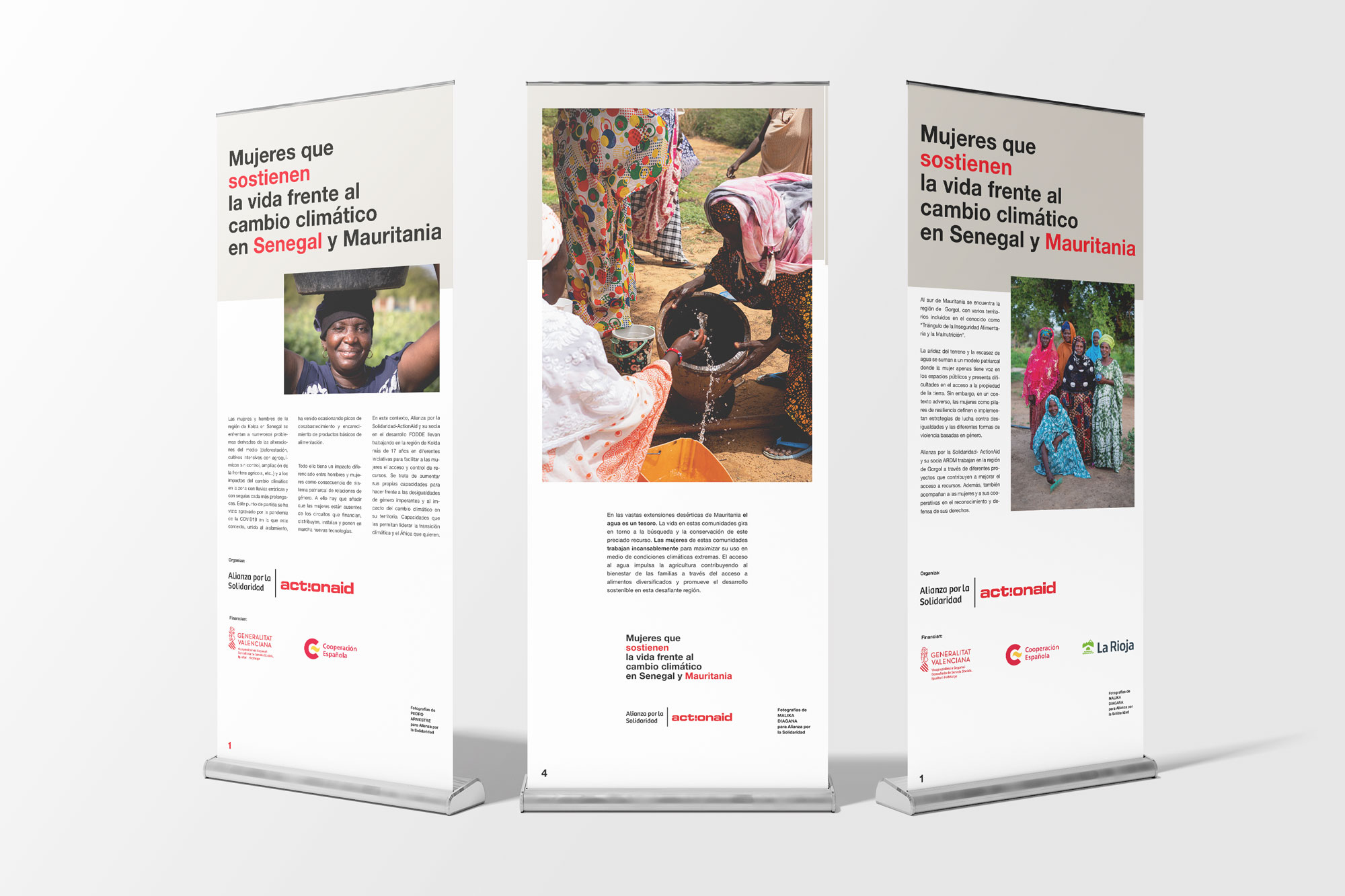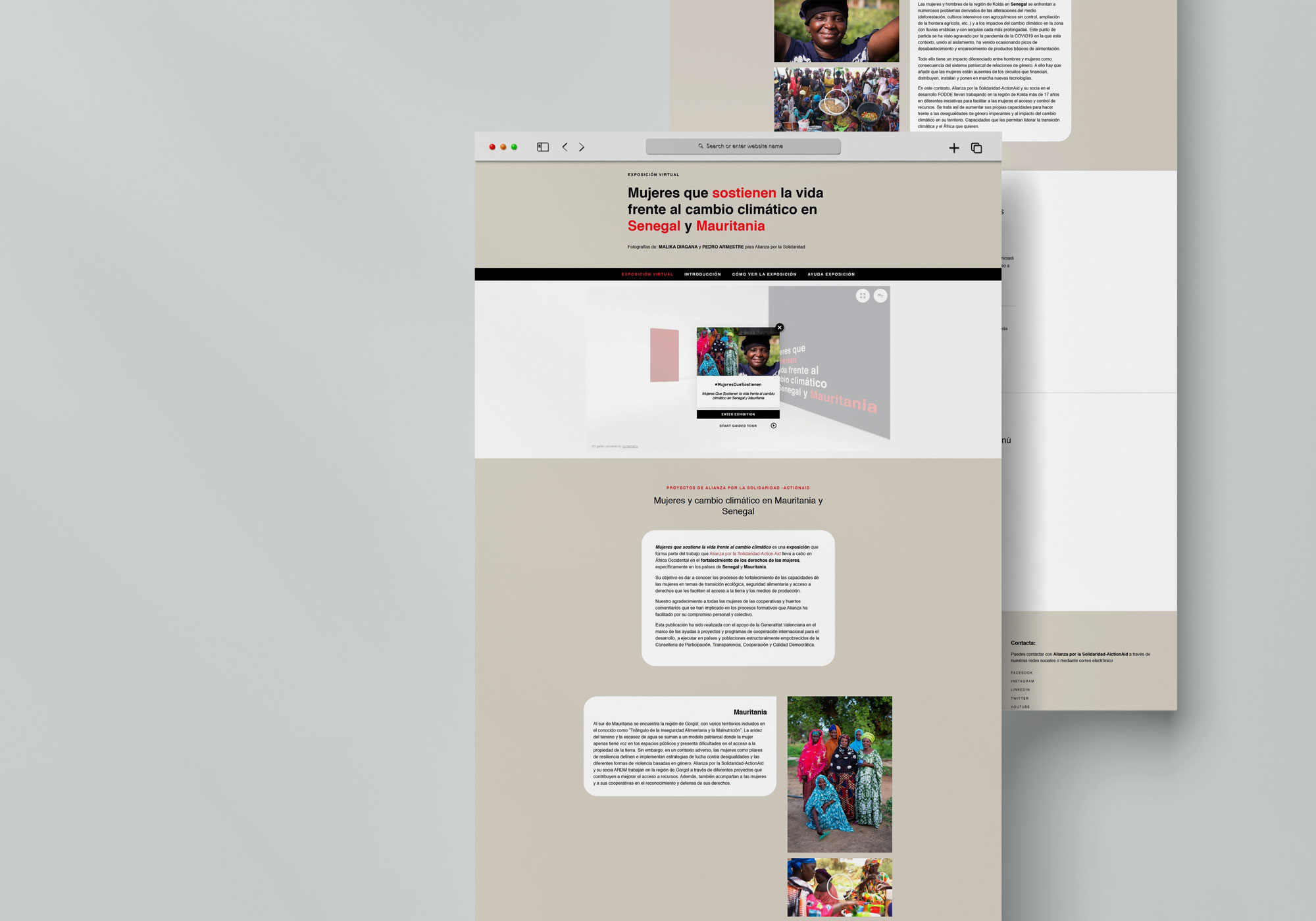 Maquetación de los plafones para la exposición física y exposición virtual alojada en su propia web. Trabajo para Alianza por la Solidaridad.