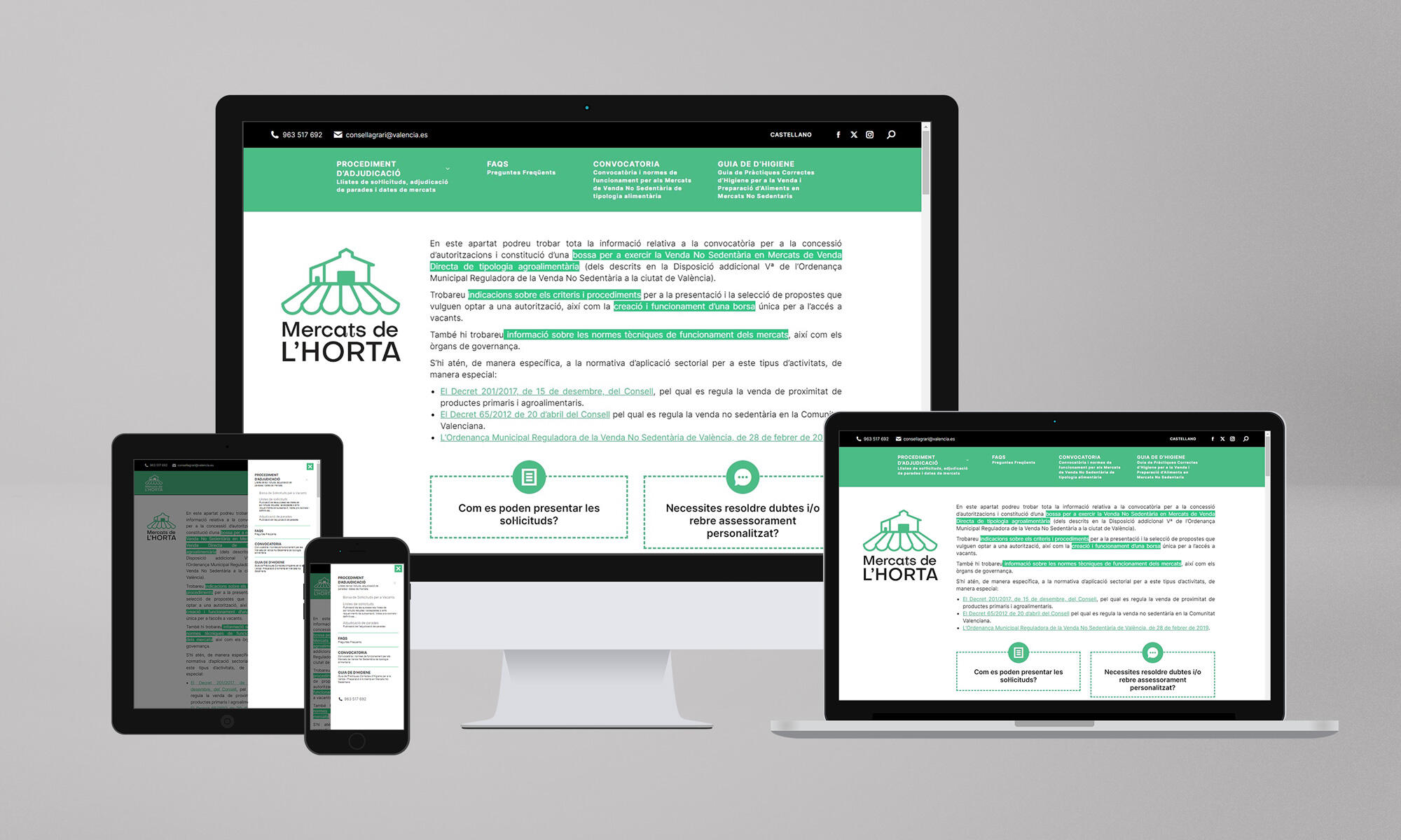 Landing page con toda la información relativa a la convocatoria para la concesión de autorizaciones y constitución de una bolsa para ejercer la Venta No Sedentaria en Mercados de Venta Directa de tipología agroalimentaria (de los descritos en la Disposición adicional Vª de la Ordenanza Municipal Reguladora de la Venta No Sedentaria en la ciudad de València).