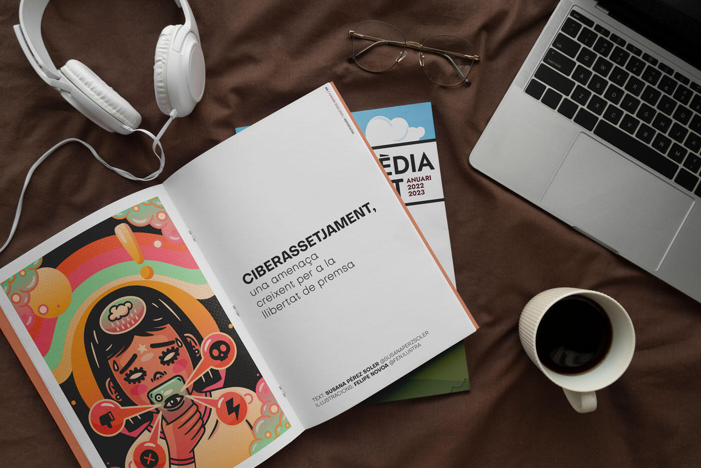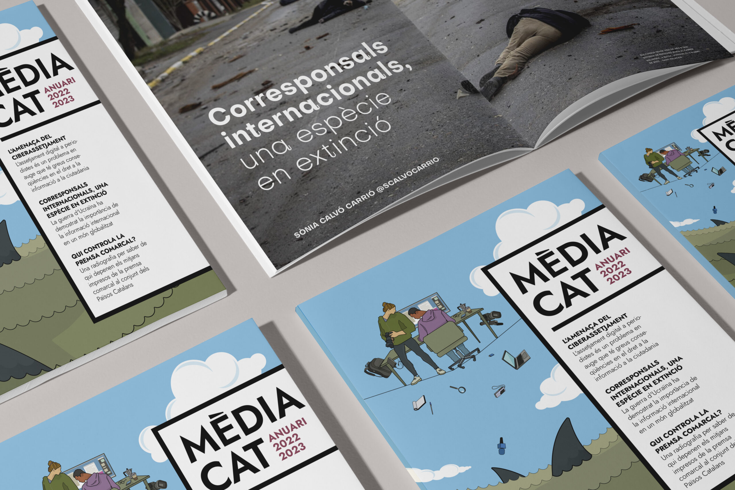 Redisseny de publicació i capçalera, maquetació, il·lustracions i part de les infografies. El nou Anuari Mèdia.cat és la nova publicació en paper de l’Observatori Crític dels Mitjans Mèdia.cat, que vol ser un altaveu transversal del periodisme i alhora, una eina útil perquè la ciutadania tinga una mirada crítica. La publicació aposta per la reflexió i l’anàlisi en profunditat sobre qüestions vinculades amb el periodisme, el tractament mediàtic i el sector de la comunicació.