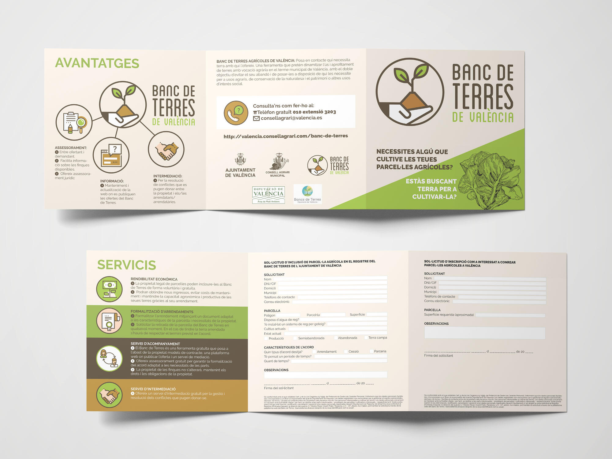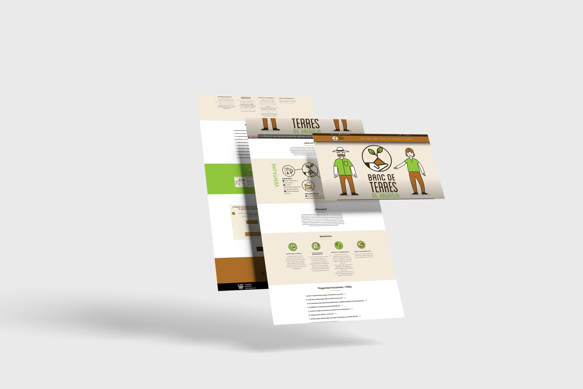 Encàrrec de el Consell Agrari Municipal de València. Ajuntament de València. Imatge corporativa per al Banc de Terres i material promocional (landing, infografies, tríptic, etc.)