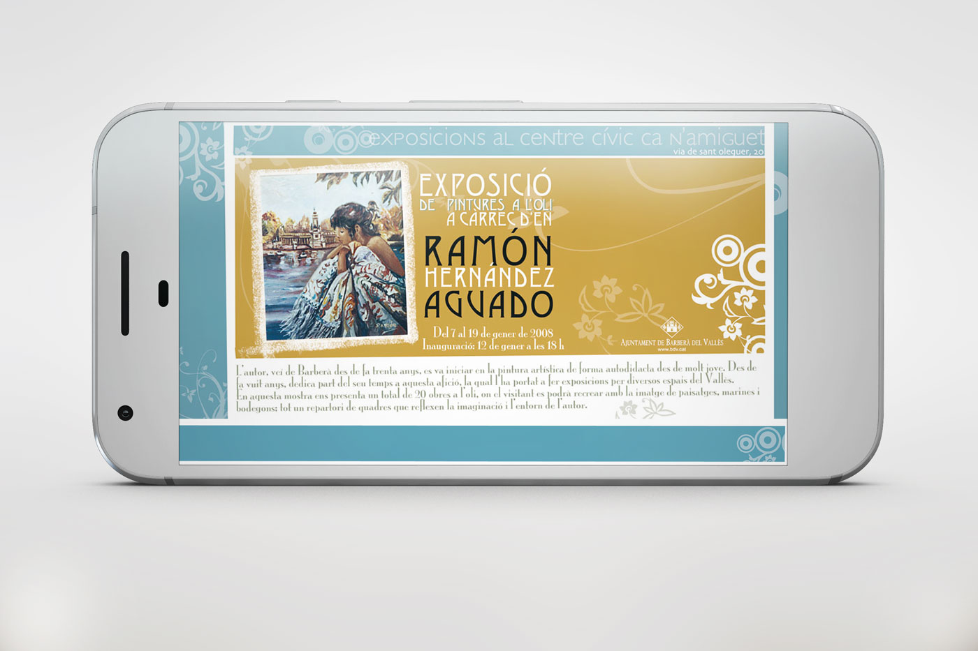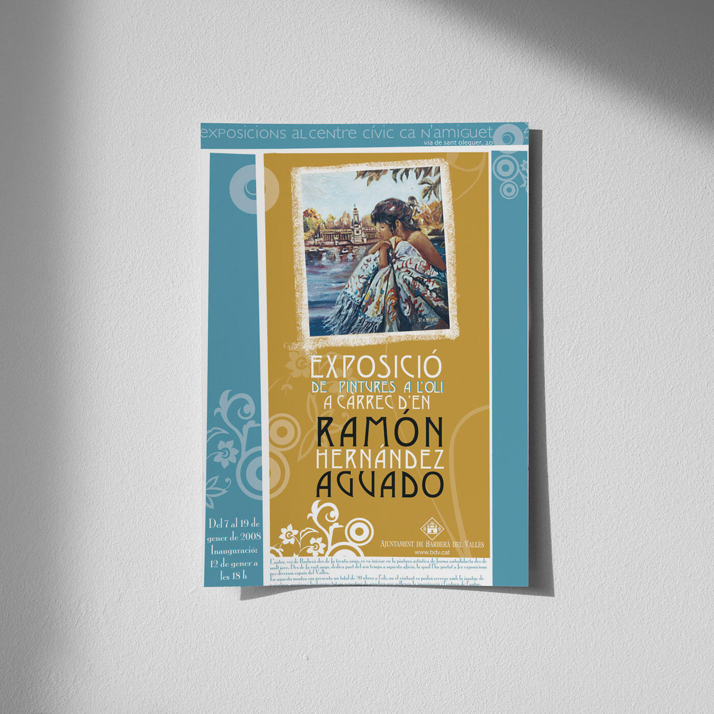 Creació de la imatge promocional per l’exposició de pintures a l’oli del Centre Cívic Ca N’Amiguet de Barberà del Vallès. Disseny en quatricomia del cartell de 420 x 297 mm (A3) i flyer 100 x 210 mm en paper satinat d’alt gramatge.