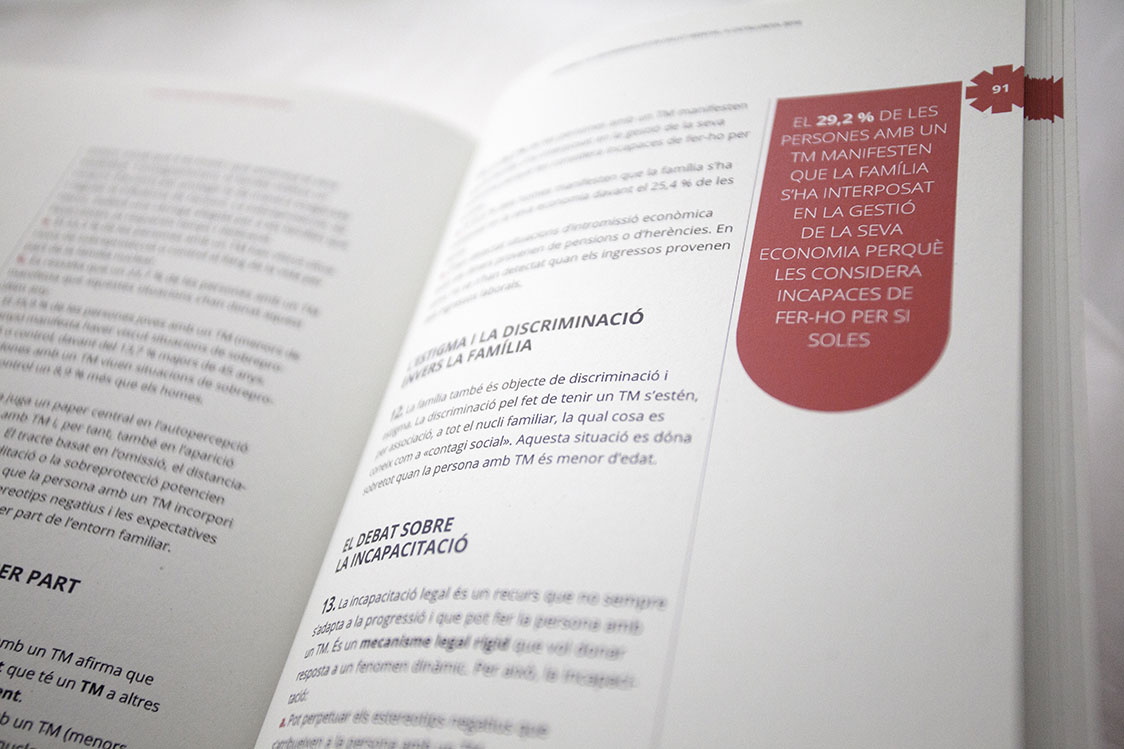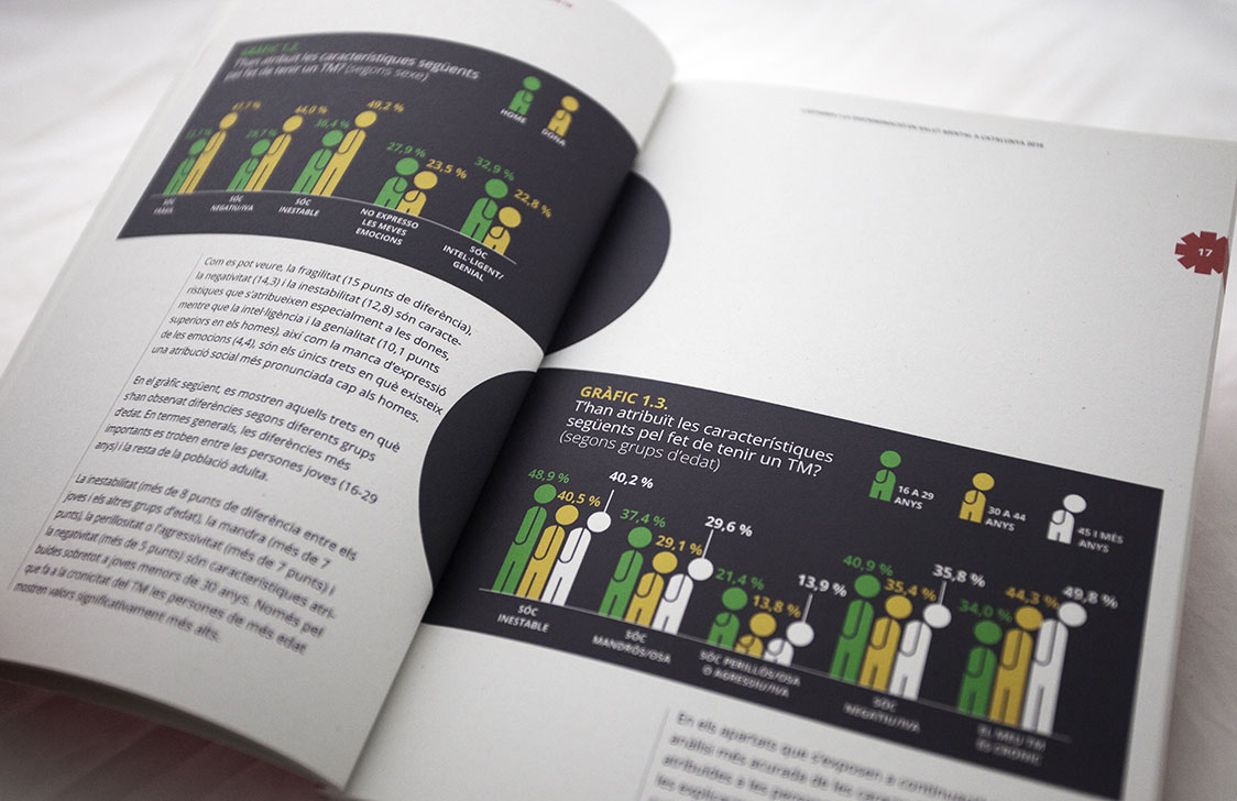 El disseny i maquetació fou encarregat per Obertament (organització que lluita contra l’estigma i la discriminació que pateixen les persones a causa d’algun problema de salut mental) i havia de respectar la seua imatge corporativa.